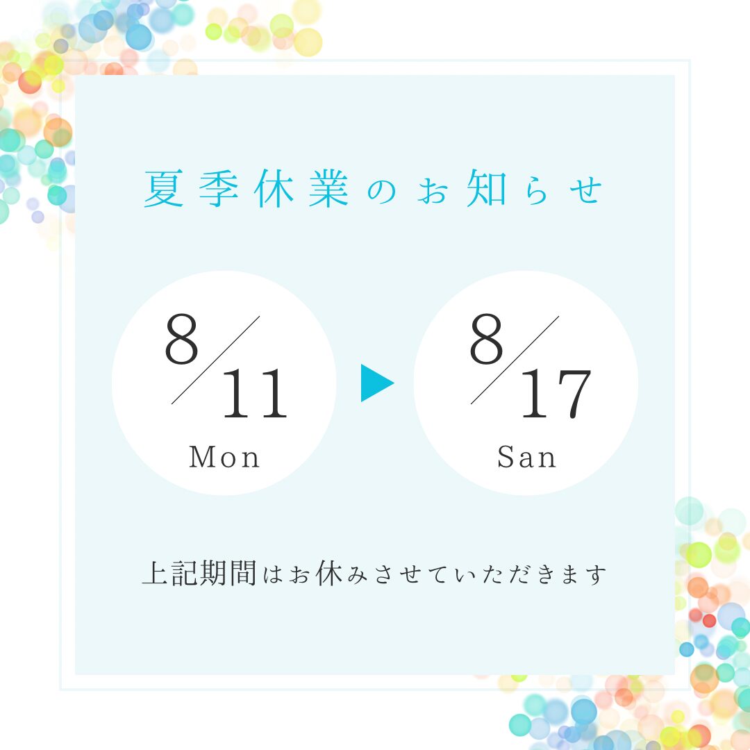●夏季休業期間 2025年8月11日 (祝・月) ~ 8月17日 (日)