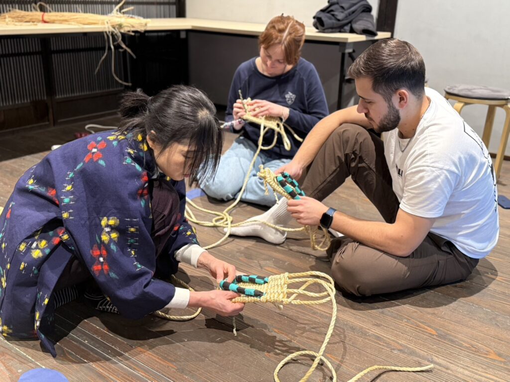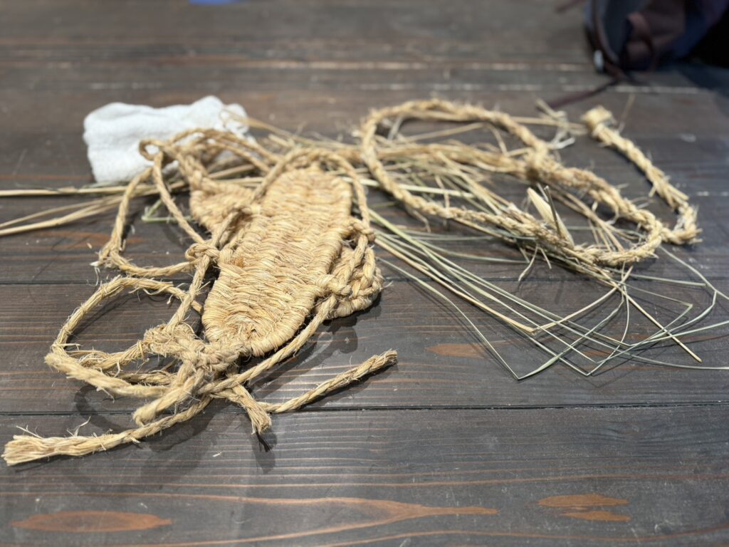 本体験では、その伝統技法を活かしながら、現代でも扱いやすい素材(稲わら風プラスチックロープ)を使用。