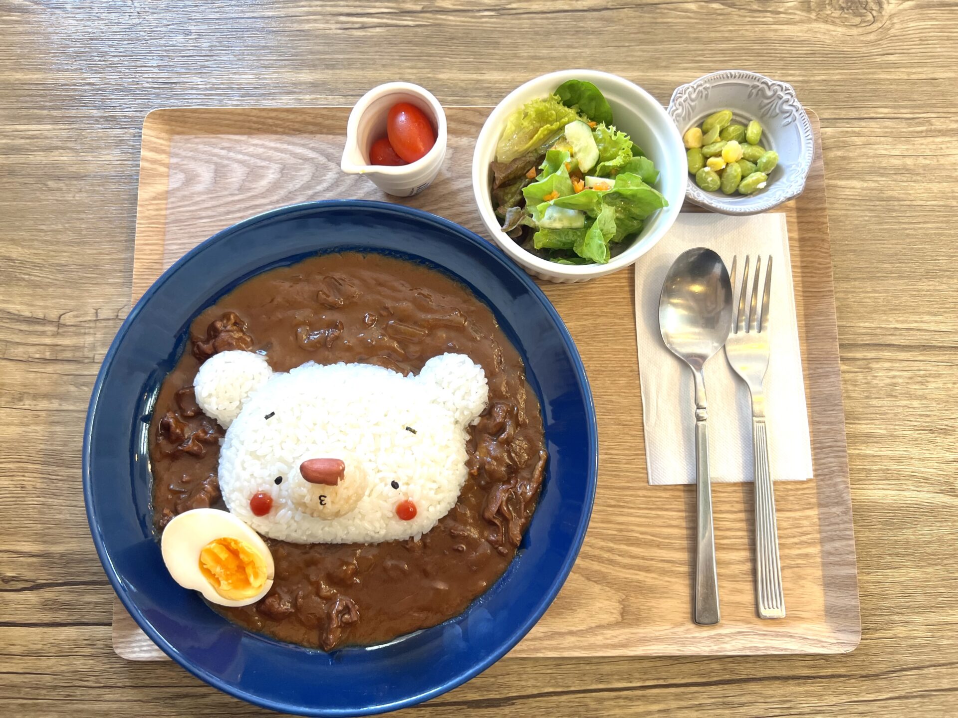 さらに、くまの形をしたごはんが目を引く「ハヤシのクマさん」をはじめ、から揚げ定食やカレーなど、見た目だけでなくしっかり満足感のある食事メニューも充実。